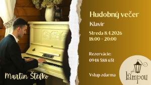 Príďte si posedieť do kaviarne, ochutnať domáce dezerty, kávu alebo víno pri pokojných tónoch klavíra. Rezervácia stolov: 0948 588 651 alebo online: link FB / IG.