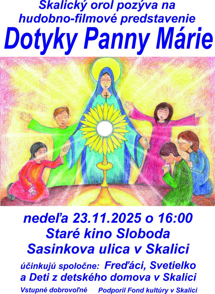Hudobno-filmové predstavenie plné mariánskych piesní a príbehov účinkujú spoločne: Freďáci, Svetielko a Deti z detského domova v Skalici.